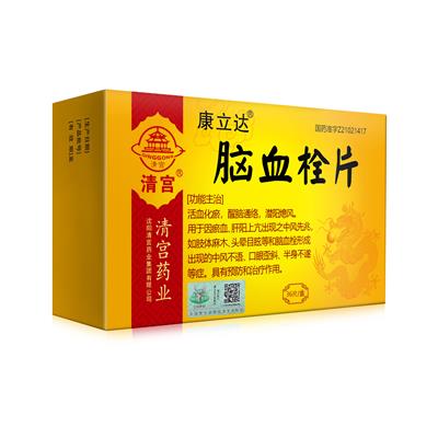 脑血栓片活血化瘀,醒脑通络,潜阳熄风。用于因瘀血、肝阳上亢出现之中风先兆,如肢体麻木、头晕目眩等和脑血栓形成出现的中风不语、口眼歪斜、半身不遂等症。具有预防和治疗作用。