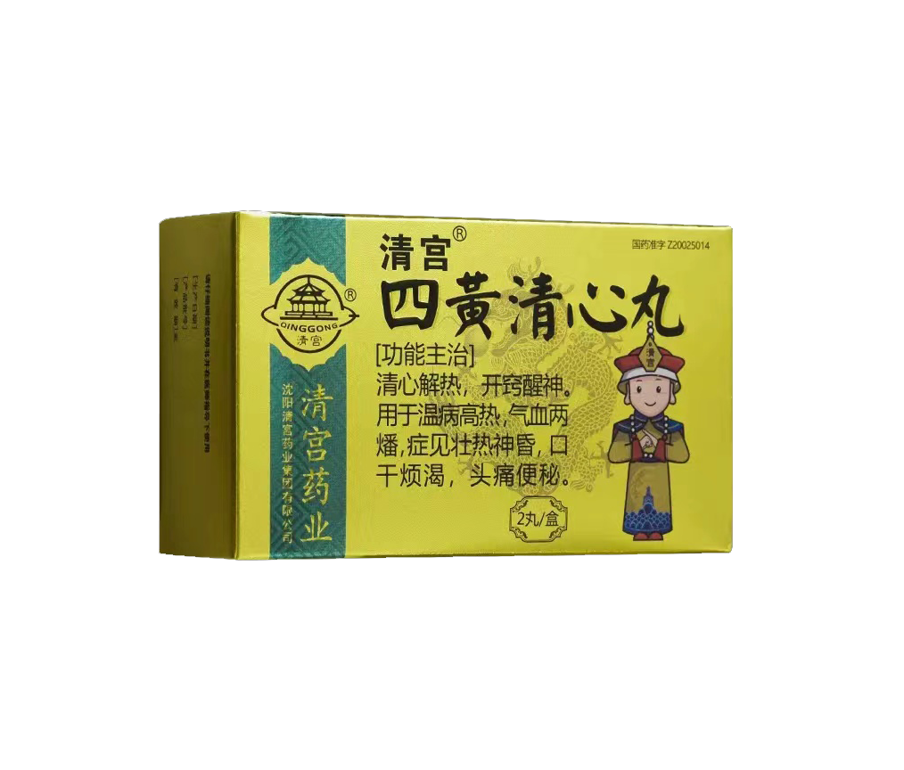 清宫四黄清心丸(礼盒装)清心解热,开窍醒神。用于温病高热,气血两燔,症见壮热神昏,口干烦渴,头痛便秘。本品为棕色至棕褐色的大蜜丸;有冰片香气,味先微甜、后微苦麻。