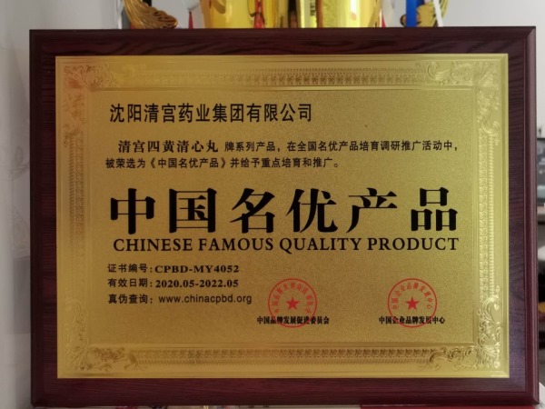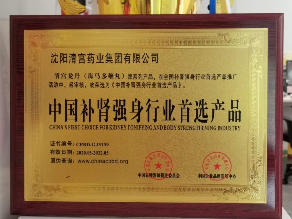近日,从中国品牌发展促进委员会、中国企业品牌发展中心传来喜讯,沈阳清宫药业集团有限公司生产的清宫龙丹(海马多鞭丸)荣获“中国补肾强身行业首选产品”、清宫四黄清心丸荣获“中国名优产品”等两项殊荣!